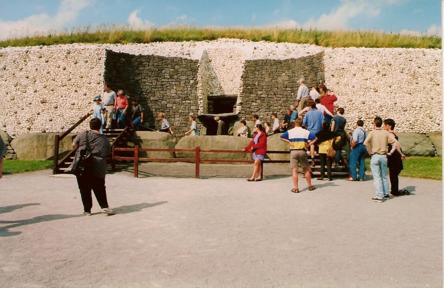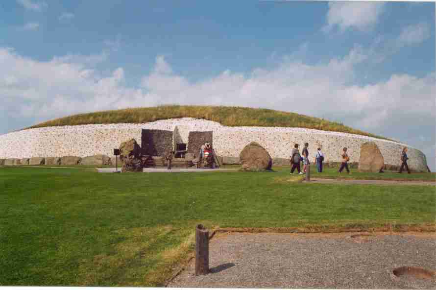 In der Nähe von Drogheda, wo im Mittelalter der Engländer Oliver Cromwell ein großes Massaker anrichtete, liegt das Boyne Valley mit seinen drei berühmten Kultstätten Newgrange, Nowth und Dowth, die alle vor ca. 5000 Jahren errichtet wurden und zwar ausgerichtet nach den Tag- und Nachtgleichen und den Sommer- und Wintersonnenwenden. |
