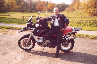 | 1996 fand ich endlich das Motorrad, das ich schon immer wollte, ohne es zu wissen: Die BMW R1100GS. Das erste Moped, dem ich einen Namen gab: Fury hieß sie fortan. Mit Ihr hab ich auch zum ersten Mal richtig lange und weitere Reisen gemacht. Umgebaut und angebaut habe ich an der GS einiges: "Hard Parts" Lenkanschlag und Getriebeverstärkung, kurzer Originalkotflügel, Handprotektoren, Alukoffer (Sondersystem - Baubreite 90cm), Nummernschildverstärkung, Seitendeckel,Motorschutzverlängerung - alles von Touratech. Einen abschließbaren Öleinfüllstutzen und ein Ledertankcover von Wunderlich. Seit April 2009 ist Fury in Dortmund unterwegs. | ![]() |
